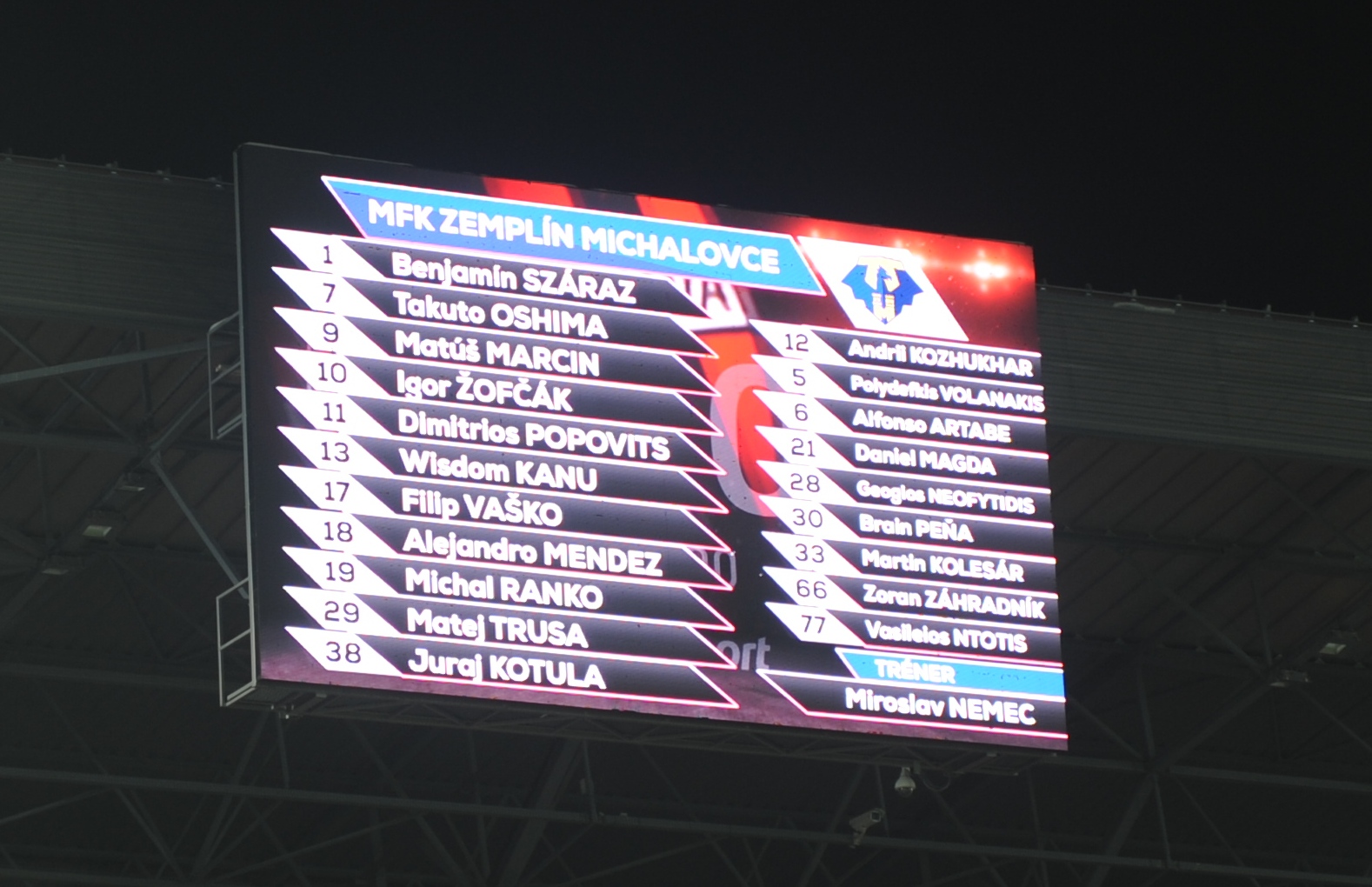 MFK ZEMPLÍN: Száraz - Kotula, Ranko, F. Vaško, Méndez - Oshima, Kanu - M. Marcin (87. Ntotis), M. Trusa (87. D. Magda), I. Žofčák (87. Peňa) - Popovits (75. Z. Záhradník)