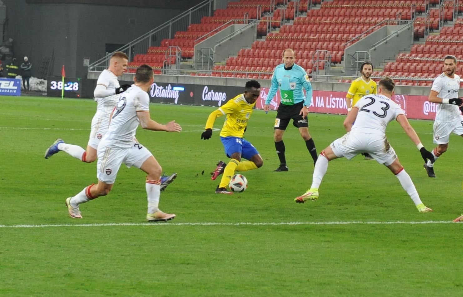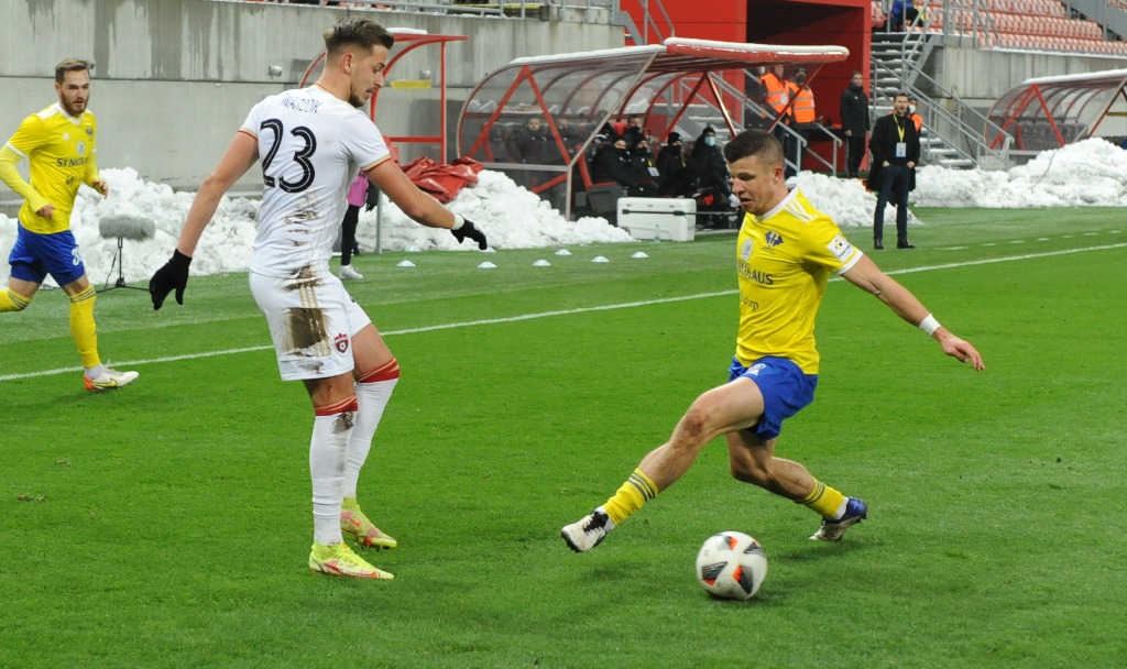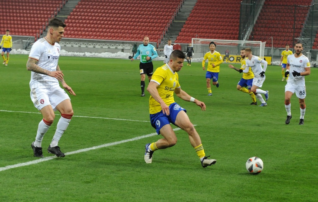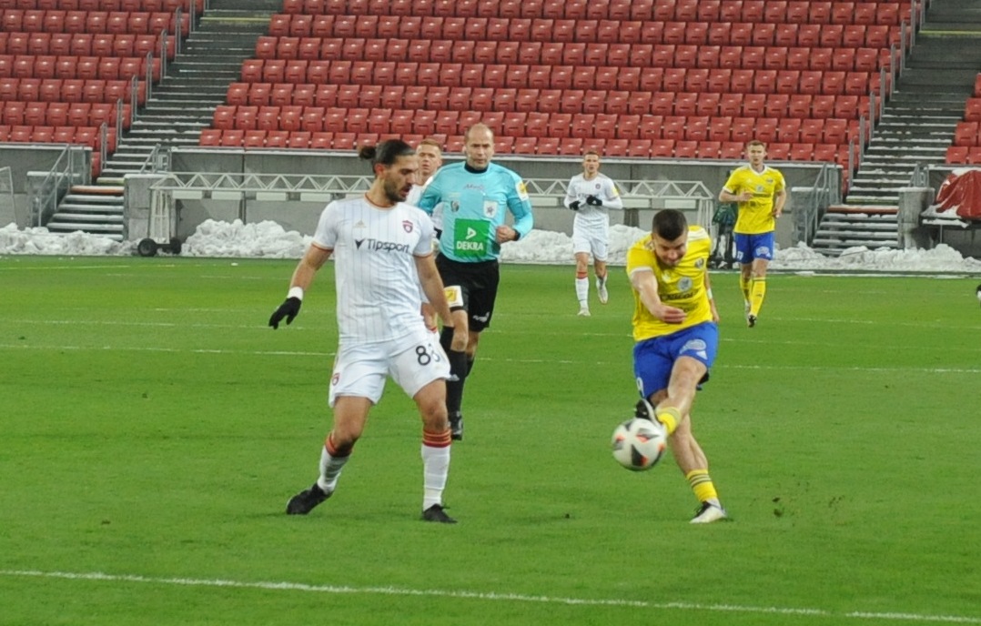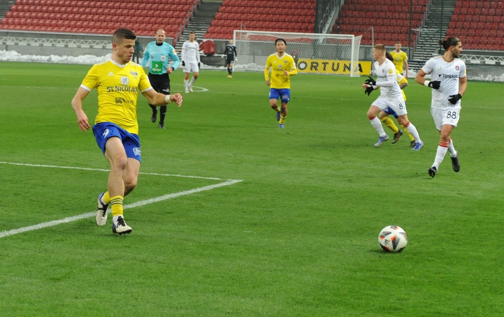 Plány Michalovčanov na dobrý výsledok sa začali búrať už v prvej minúte. V 34. sekunde neudržal Száraz strelu Saymona, lopta sa dostala pred úplne voľného Martina Bukatu a ten ju poslal do brány. Michalovčania kontrovali prudkou strelou Marcina, no stále si nedávali pozor na zadné vrátka. Po pravej strane unikol Saymon, jeho strieľaný center ale nik neupratal za bránkovú čiaru. Hostia nezobrali varovanie vážne a v pätnástej minúte už inkasovali, keď sa dostal v pokutovom území k lopte Yusuf Bamidele a nekompromisne skóroval. O štyri minúty neskôr Száraz vyrazil prudkú strelu Mikoviča na rohový kop a potom už prišli aj chvíle Michalovčanov. Tí mali v druhej polovici prvého polčasu prevahu, nepretavili ju však v kontaktný gól. Najbližšie k nemu mal v 35. minúte Michal Ranko, jeho štipľavú strelu ale Takáč vyrazil pred Žofčáka a toho projektil minul tri žrde.