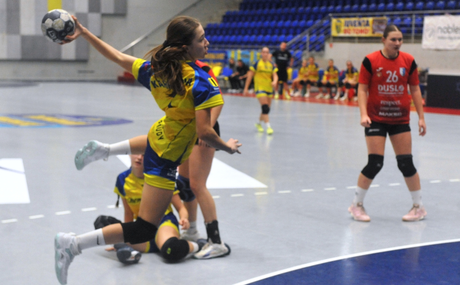HK SLOVAN DUSLO: Fajinová - Szabóová 3, Laura Kurňavová 7, Z. Sojková 3/3, Lara Kurňavová 8/1, Fehér, E. Sojková 4, Blašková 1, Nagyová 5, Tóthová, Gombášová, Hajduová 1, Legnerová, Puskásová 2.