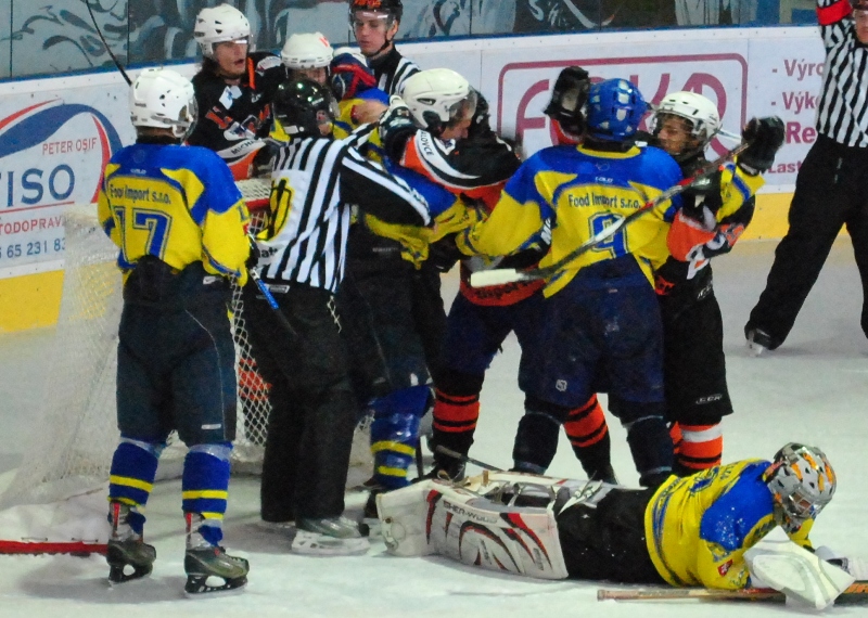 Vylúčení: 12:5,1:0, Oslabenia: 1:1, Rozhodovali: Jura (Sýkora, Jobbagy).