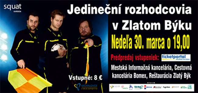 POZOR: Všetky futbalové družstvá majú na vstupenku na divadelné podujatie zľavu vo výške 50 %. Cena vstupenky je 4 €! Objednávky vstupeniek na 0917 203 776