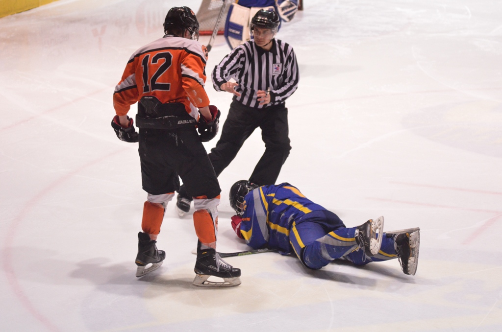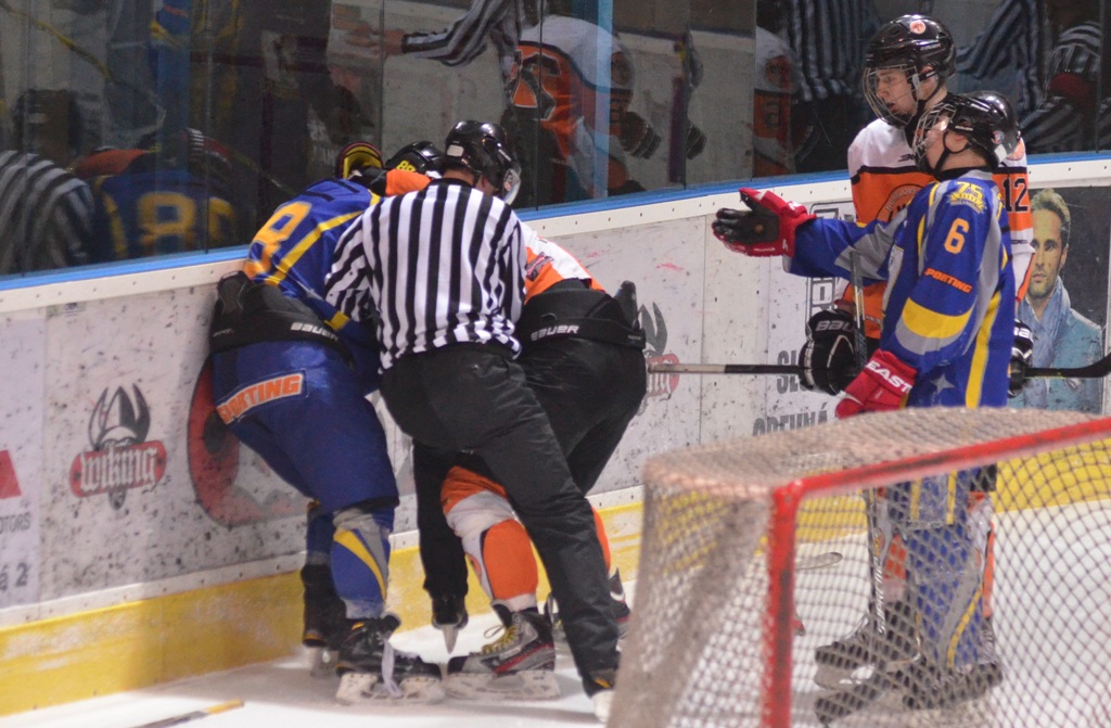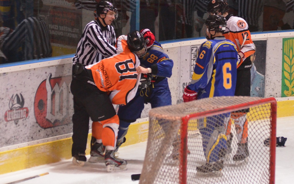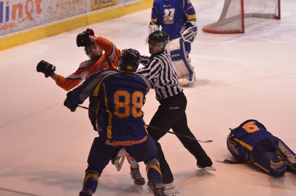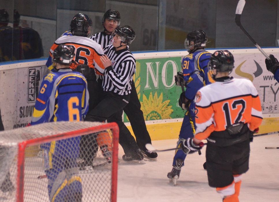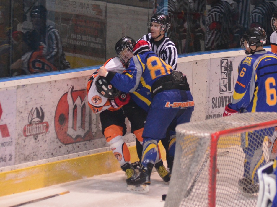 Vylúčení: 6:5, navyše Štenko 5+DKZ hrubosť - Benik 5+DKZ hrubosť. Presilovky: 3:0. Oslabenia: 0:0. Rozhodovali: Kalina - Riš, Janiga. Divákov: 910.