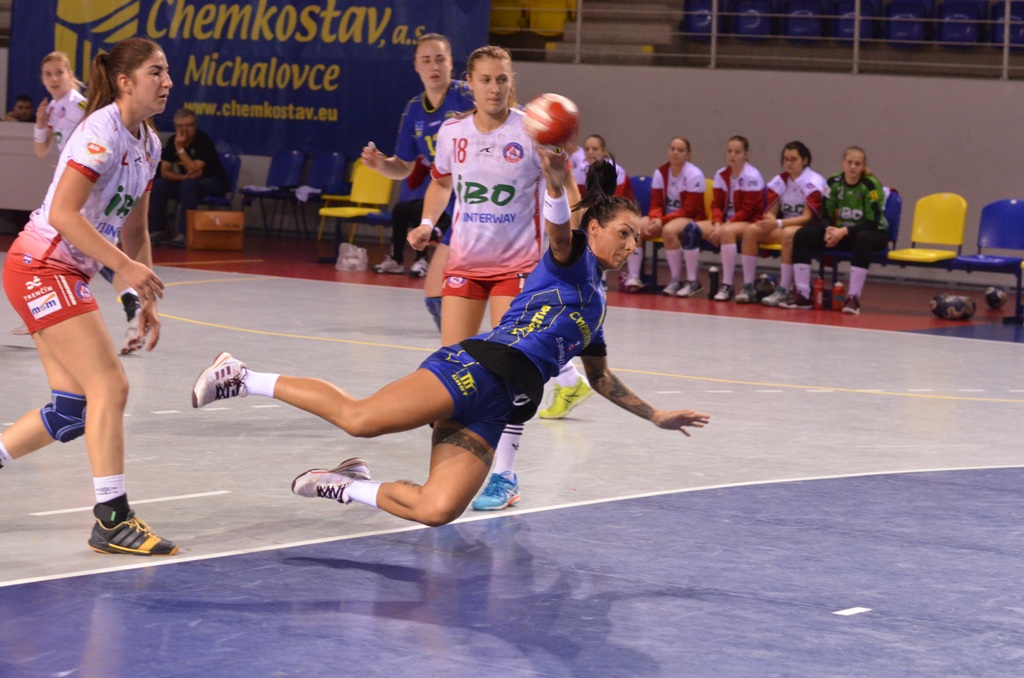 V jednom z dvoch štvrťfinálových stretnutí Slovenského pohára, kde na seba narazili účastníci MOL Ligy, sa v prvom polčase hrala hádzaná ako na hojdačke. Lepšie začali Michalovčanky, ktoré si v prvých minútach vypracovali niekoľkogólový náskok. V ôsmej minúte viedli po góle Holešovej 7:4, no následne prišla na nich hluchá pasáž, ktorú súper využil. Michalovčanky v tejto fáze zahodili viacero sľubných šancí, čo bola voda na mlyn Trenčína. Ten sa v štrnástej minúte po presnom zásahu Nejedlíkovej dokonca dostal do vedenia (8:9). Michalovčanky sa ale zobudili v pravý čas. V 20. minúte sa opäť dostali do vedenia (10:9) a to natiahli do konca prvého dejstva na päť gólov (17:12).
