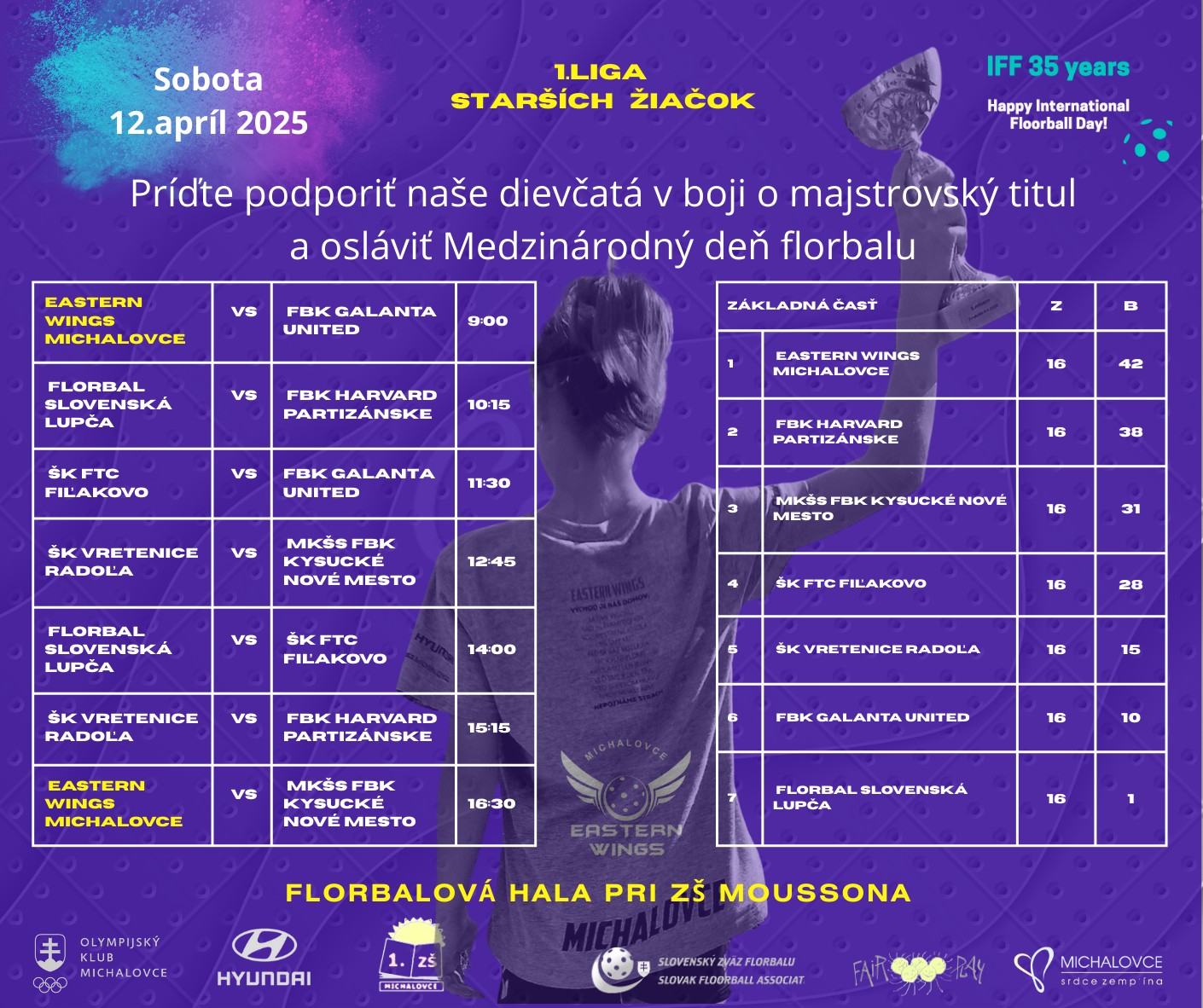 Sobota 12 apríl (9.00 hod., Mestsá športová hala)