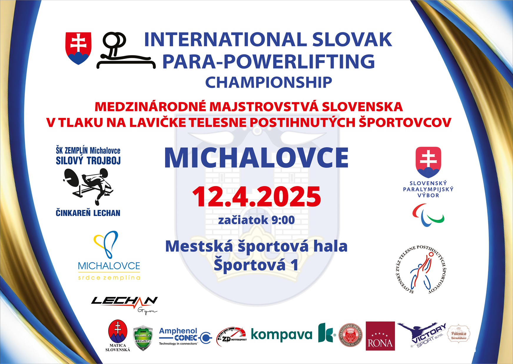 Medzinárodné Majstrovstvá Slovenska telesne postihnutých športovcov v tlaku na lavičke.