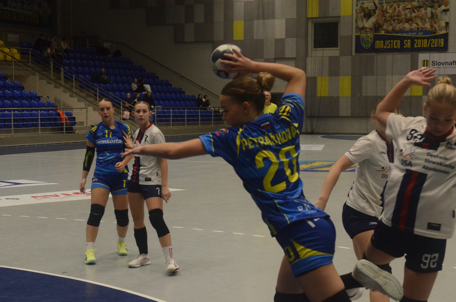 ŠTART: Gazdagová - Domorádová 1, Szathmáryová, Handurová 4/1, Bobíková 1, Torkošová, Antolíková 3, Lajošová, Némethová, Sorochan, Zuščáková 1, K. Kompaniecová 11/4, Palenčíková 3.