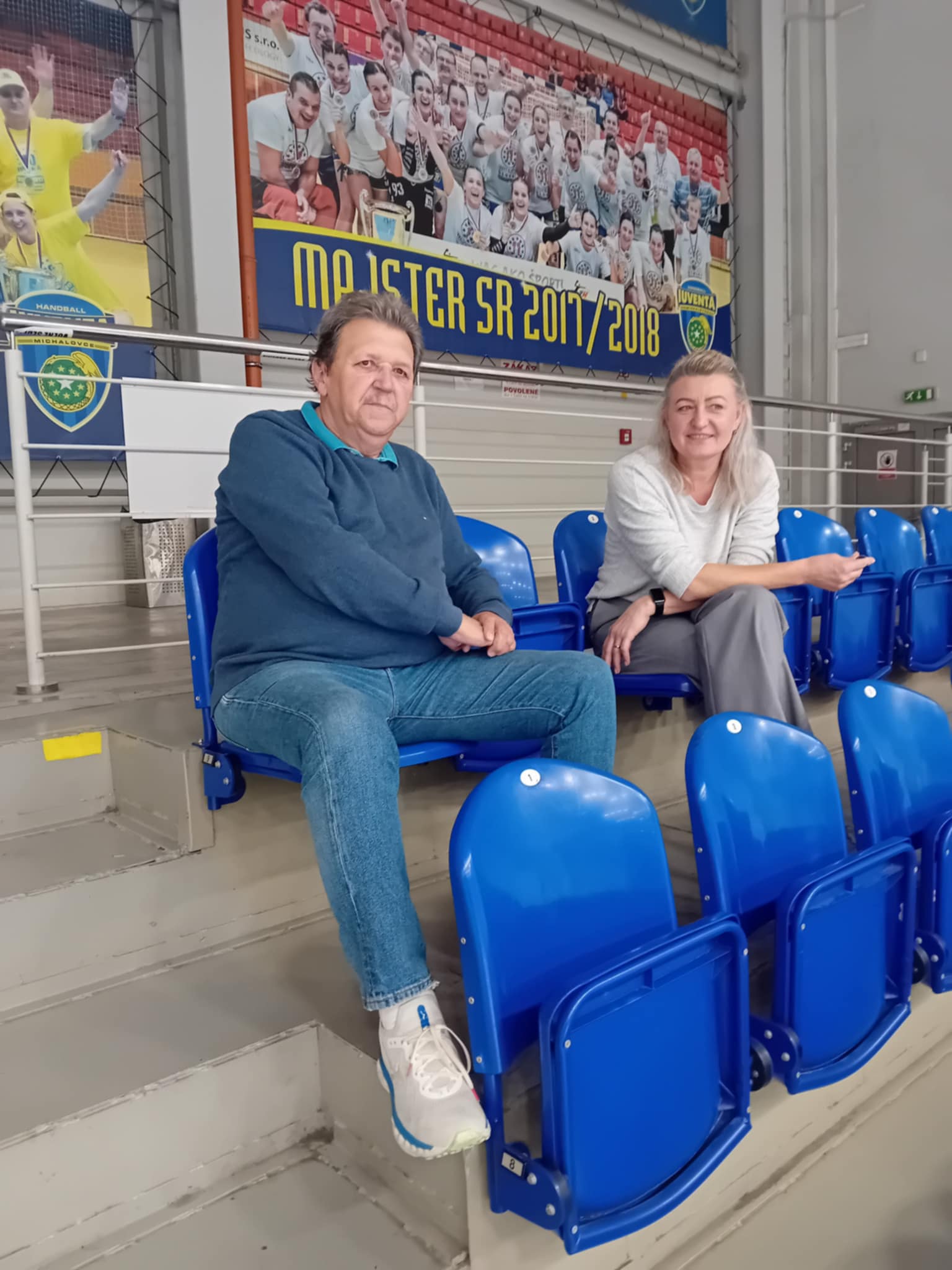 Pavol Streicher počas rozhovoru s Líviou Kalaninou, svojou bývalou zverenkou v reprezentácii a dnes športovou riaditeľkou MŠK Iuventa Michalovce