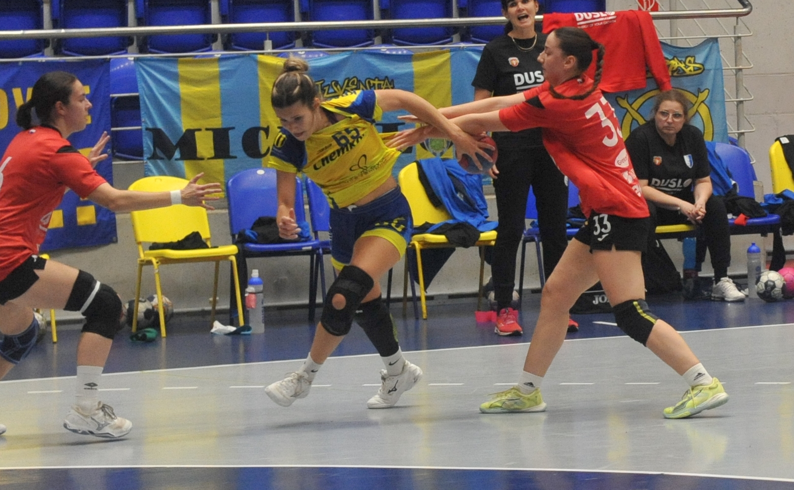 HK SLOVAN DUSLO: Fajinová - Szabóová 3, Laura Kurňavová 7, Z. Sojková 3/3, Lara Kurňavová 8/1, Fehér, E. Sojková 4, Blašková 1, Nagyová 5, Tóthová, Gombášová, Hajduová 1, Legnerová, Puskásová 2.