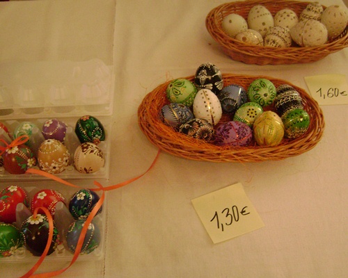 V Michalovciach sme našli vajíčko za 12,50 eur. Cena vajíčok vzrastá s veľkonočným obdobím. Išlo o pštrosie vajíčka, ktoré ľudia rýchlo vykúpili. Nachádzali sa na výstave Krása veľkonočnej škrupinky v Zemplínskom múzeu v Michalovciach.