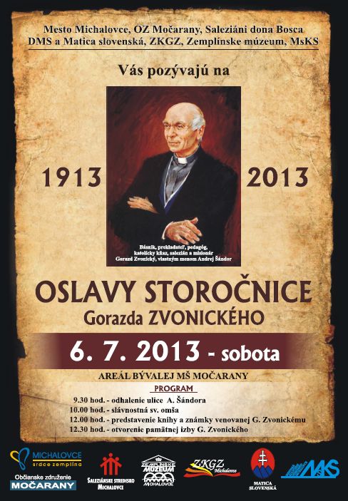 Vyvrcholením osláv nedožitých stých narodením je slávnosť, ktorú pripravilo mesto Michalovce v spolupráci s OZ Močarany, Saleziánmi dona Bosca, DMS a Maticou slovenskou, Zemplínskou knižnicou Gorazda Zvonického a Zemplínskym múzeom. Podujatie sa uskutoční v sobotu 6. júla pri kostole Svätého Gorazda a spoločníkov na Močarianskej ulici v Michalovciach.