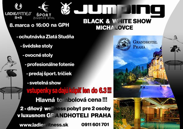 Organizácia Šport - životný štýl v spolupráci s R+R Ladiesfitness pripravilo na sviatok všetkých žien MDŽ, čiže 8. marca veľkolepú akciu pod názvom BLACK & WHITE JUMPING SHOW – skákanie na trampolínkach. To sa uskutoční v sobotu 8. marca od 16.00 v telocvični GPH.